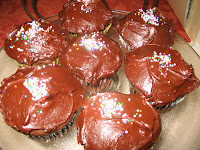 Today one of our parents was going to bring in cupcakes for an after-school event, but at the last minute, changed her mind. Well darn it, I could almost taste those chocolate cupcakes! I had my coffee all ready to go with it. So when we got home, before starting dinner, I made just a half batch. Kevin and I each enjoyed one for dessert with a glass of cold milk. YUM!