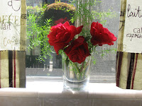 And dad's beautiful garden roses which grace the table as the centerpiece...