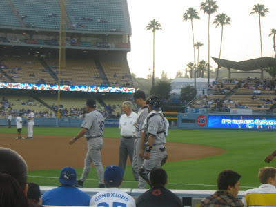 Last night we were treated to a great evening: fabulous tickets for the Dodger game. It was sort of a last minute 'what are you guys doing Tuesday night?' kind of thing...and boy, are we ever glad we didn't already have plans!