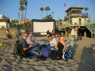 Last night Manhattan Beach hosted a "Movie on the Beach" night. On the marquee: Pirates of the Caribbean: Curse of the Black Pearl. We decided that this would be a perfect way to bid farewell to summer, so we invited some friends to join us.