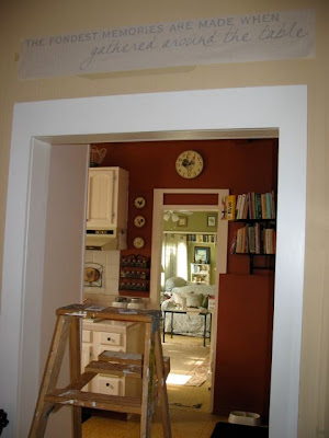 I found these fun wall clings out shopping one day. I thought they'd add a fun touch to our home. They're fairly easy to apply - though the first one was a bit of a bugger. Here's the dining room's "before" version: