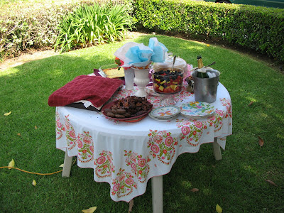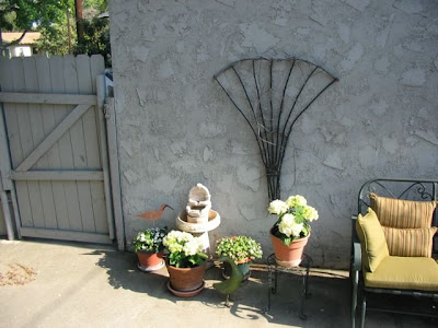 We also did some work out in the garden. Whew! I've been very neglectful of this area and it sure reminded us of that this weekend. I've decided to work on one small area at a time. This weekend we planted two iceberg roses, 4 hydrangeas, 2 impatiens, 4 pots of white alyssum, a culinary herb garden consisting of sweet basil, rosemary, tarragon, lemon thyme, garlic chives, Italian parsley and peppermint. I also re-potted my plumeria, which seems to be thriving in spite of me. See what I mean -- busy, busy bees! We also bought new cushions for the glider, an adorable green goose (again, from my favorite thrift store), and Kevin got a new toy...a new BBQ! It's a nice one - we tested it out over the weekend with hotdogs (for the Dodger game Saturday night) and steaks (for dinner on Sunday with Vicky). It's a wonderful BBQ that we'll enjoy for many years to come. Here are some photos: