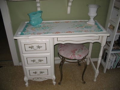 My new "craft desk" in the garden room. Isn't it adorable? I found it at my favorite thrift store about 6 months ago. It's been stored away in the cellar until it's new home was ready for it.