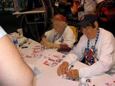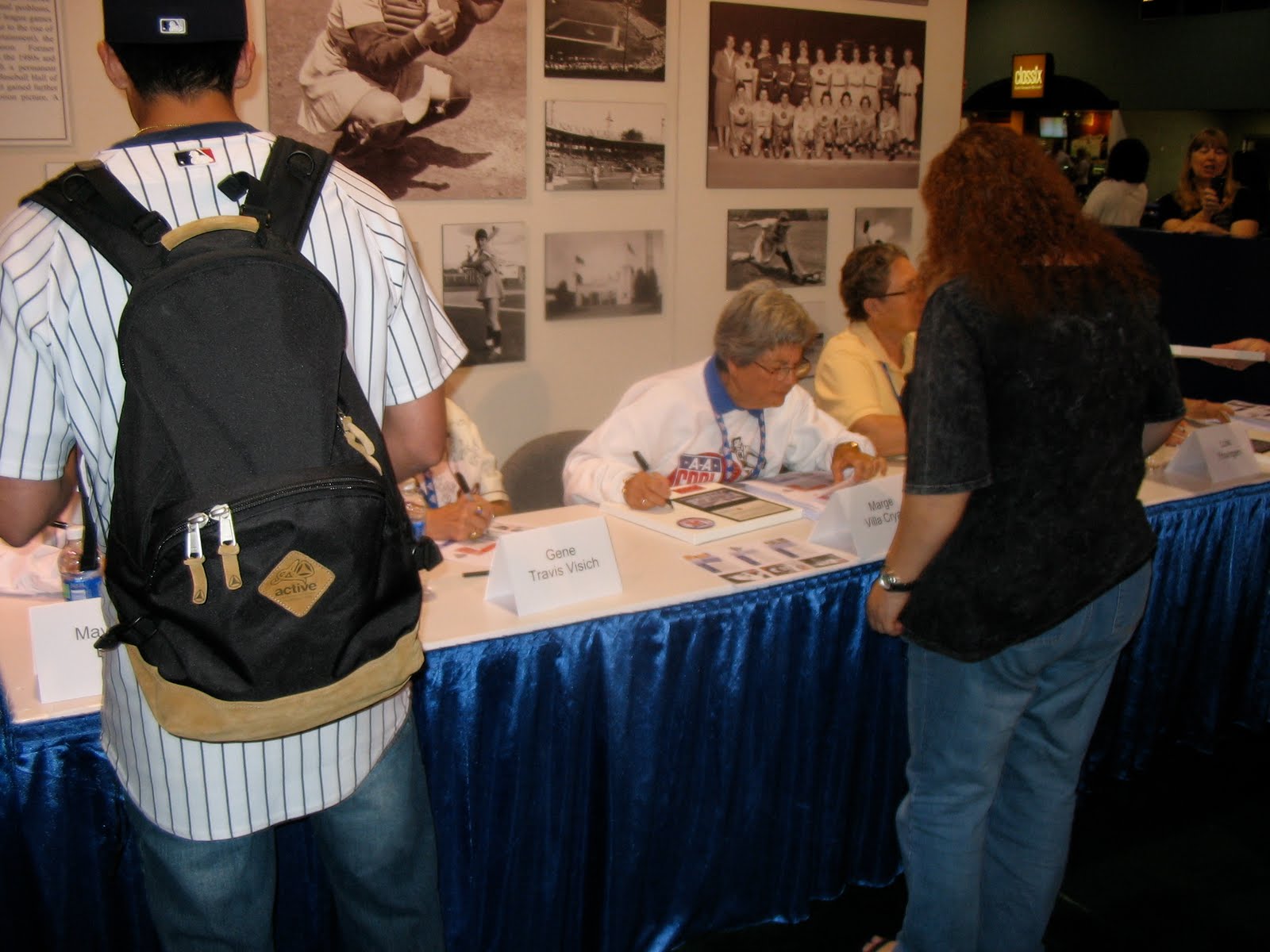 Yesterday Kevin and I had the opportunity to meet all of these ladies in person! We attended FanFest at Anaheim Convention Center -- all things baseball. They are the nicest women - all with such interesting stories. What an amazing part they played in the history of baseball. Solidarity Sistahs! It did sadden me, though, when one of the ladies mentioned of that they are losing, on average, one of their members per month. Or as she said 'we're all dying off' =( Lucky for us, we got to meet these seven women before ... well, you know. We now have a baseball added to Kevin's collection that all seven of these women signed. What a great addition to the collection!