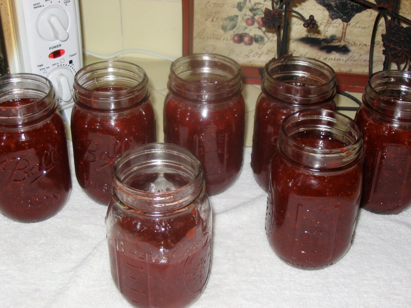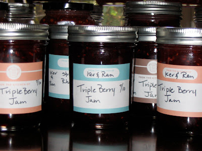 After we finished with the jam, Kevin looked at the finished product and said "All that work for seven jars of jam?!" Which, is true ... however, I did reason that these were fairly large jars of jam. If we'd made smaller jars, it would have looked like more =)