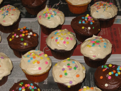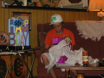 Last Sunday we celebrated their birthday. The celebration was at mom and dad's house and we had a feast fit for two kings! ...or at the very least, two 14 year olds. Grilled hamburgers and hot dogs, homemade potato salad, baked beans, lots of fresh fruit, and cupcakes for dessert. Mmmmmmm ... cupcakes!