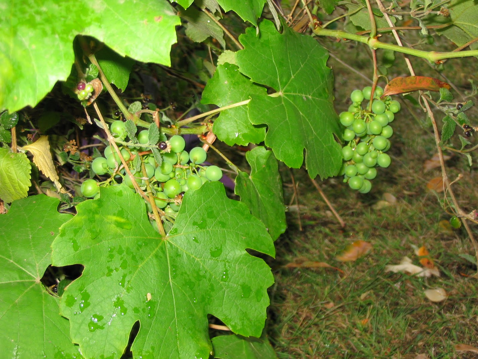 Then, just outside of the Fern Grotto, we have grapes. We didn't know that until last year when one of our neighbors pointed it out to us. Now that we know they're there, I've been keeping an eye on them. The other day I noticed that we had baby green grapes. I don't know what variety the grapes are, but I'm guessing the small champagne variety. Last year there were a ton of them and they all ripened but they stayed very small. Anyway, while watering tonight I went over to check them out. The vines are loaded! I think they just look so cool! We do have a lot of deer in the area and last year I noticed them munching on some of the grapes; hopefully we'll be able to keep them more to ourselves this year. I'm sure we'll be able to salvage at least some of them - some of the clusters are pretty far up in the yard and I didn't see the deer up quite that far in the yard.
