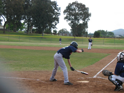 So ... what do you think happened? Second game? Or no second game? If you guessed second game, you'd be a big winner - just ask my poor sunburned shins and feetsies. (Let me just say this about that: wear sunscreen. Even if you think it's cloudy. Go ahead, ask me how I know.)BUT ... it was totally worth it! Both Pat and Drew got and awesome hit! And Pat had the perfect catch out in left. It was so thrilling to watch. We enjoyed the heck out of it. Deb is the team scorekeeper and Bill walked from one side to the other taking pictures of the boys. AND, the best part of all - Auntie Nan and Grandpa Bill from Seattle flew in for the game. Die hard fans, no? ;o)
