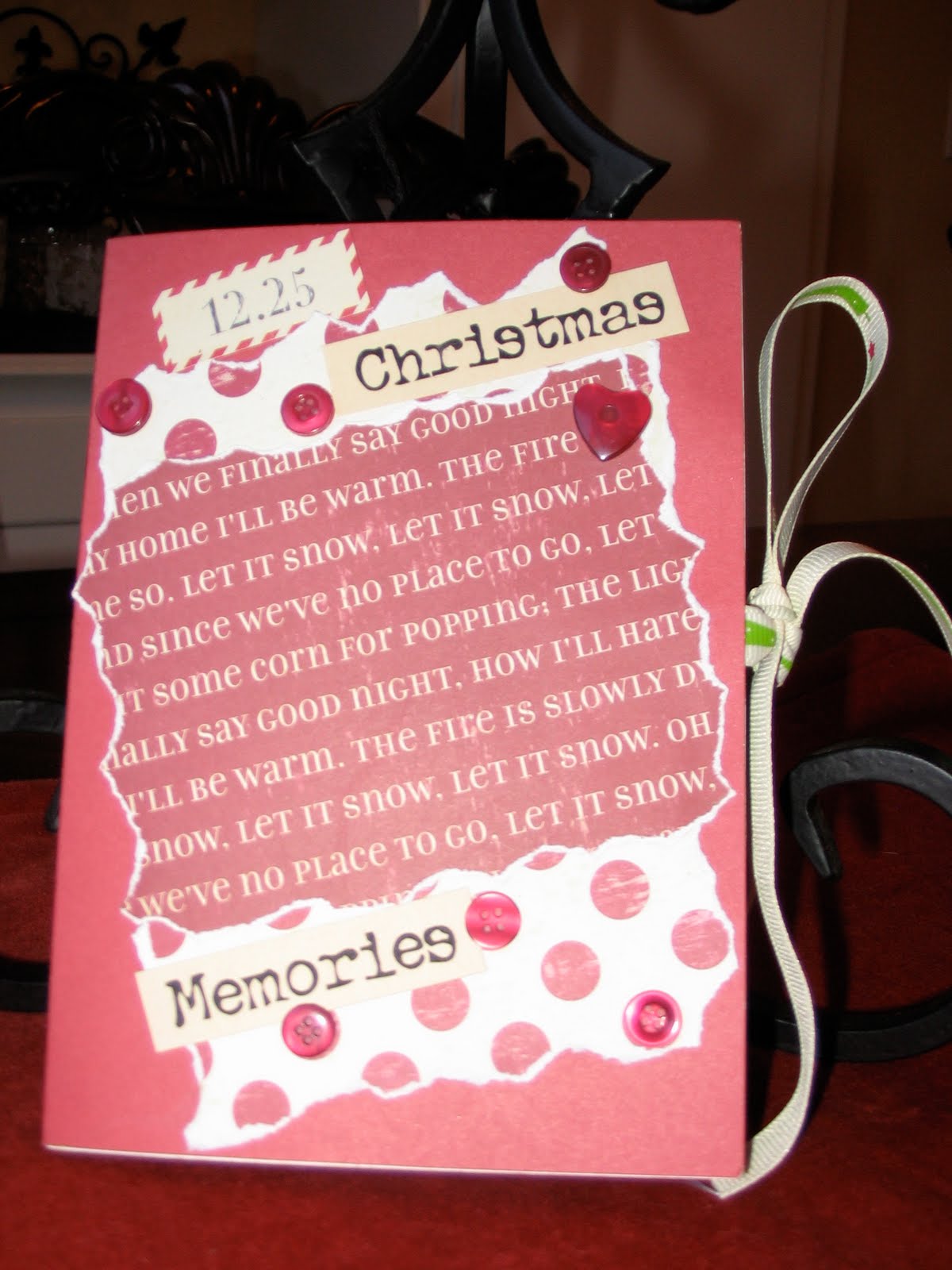 (This is kinda strange. In looking over my blog, I saw that there were a few items in the 'draft' stage. Hmmm...I didn't even know they were there! I decided to publish this post even though it's about two years old. The subject is actually pretty close to right on time and hey, better late than never, right?! I think I didn't publish it when I first wrote it because I made one of the Memory Books for Deb. If I'd published it, she would have seen it before I gave it to her as a gift. Not good. At any rate, here it is!)
